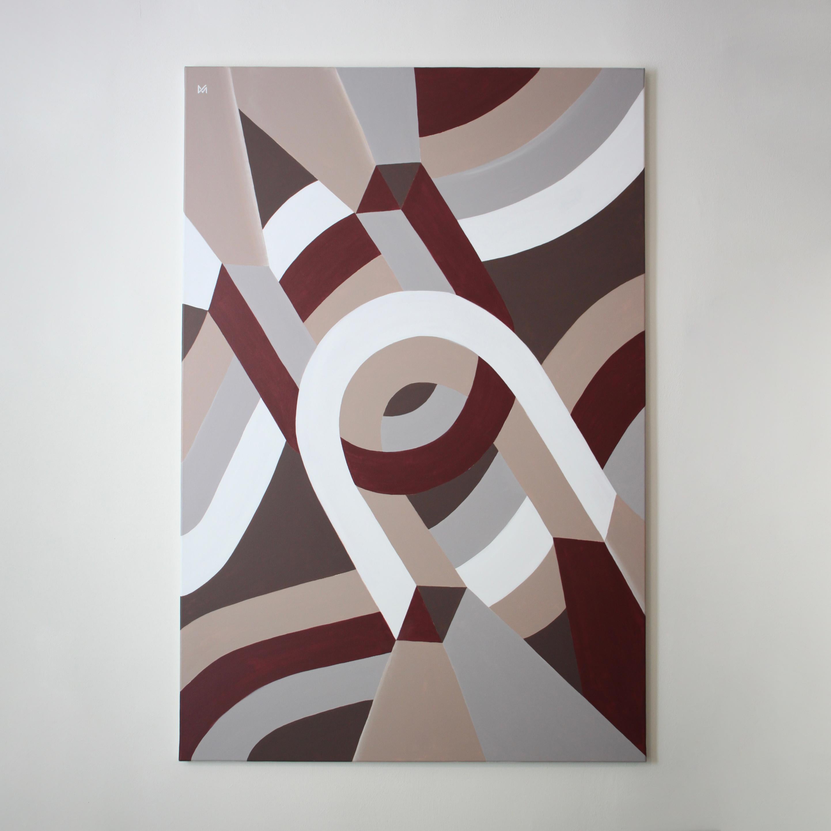 Objekte ähnlich wie Buntes modernes abstraktes Originalgemälde Meta-Futurismus. Burgunderrot, grau, braun.