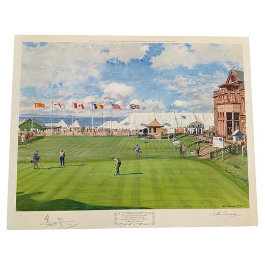 Sammlerstück "18th Green Royal & Ancient" Golf-Lithographie mit Original-Skizze des bekannten Links-Künstlers Arthur Weaver, ca. 1969. Das 18. Green Royal & Ancient zeigt den Sieger ...