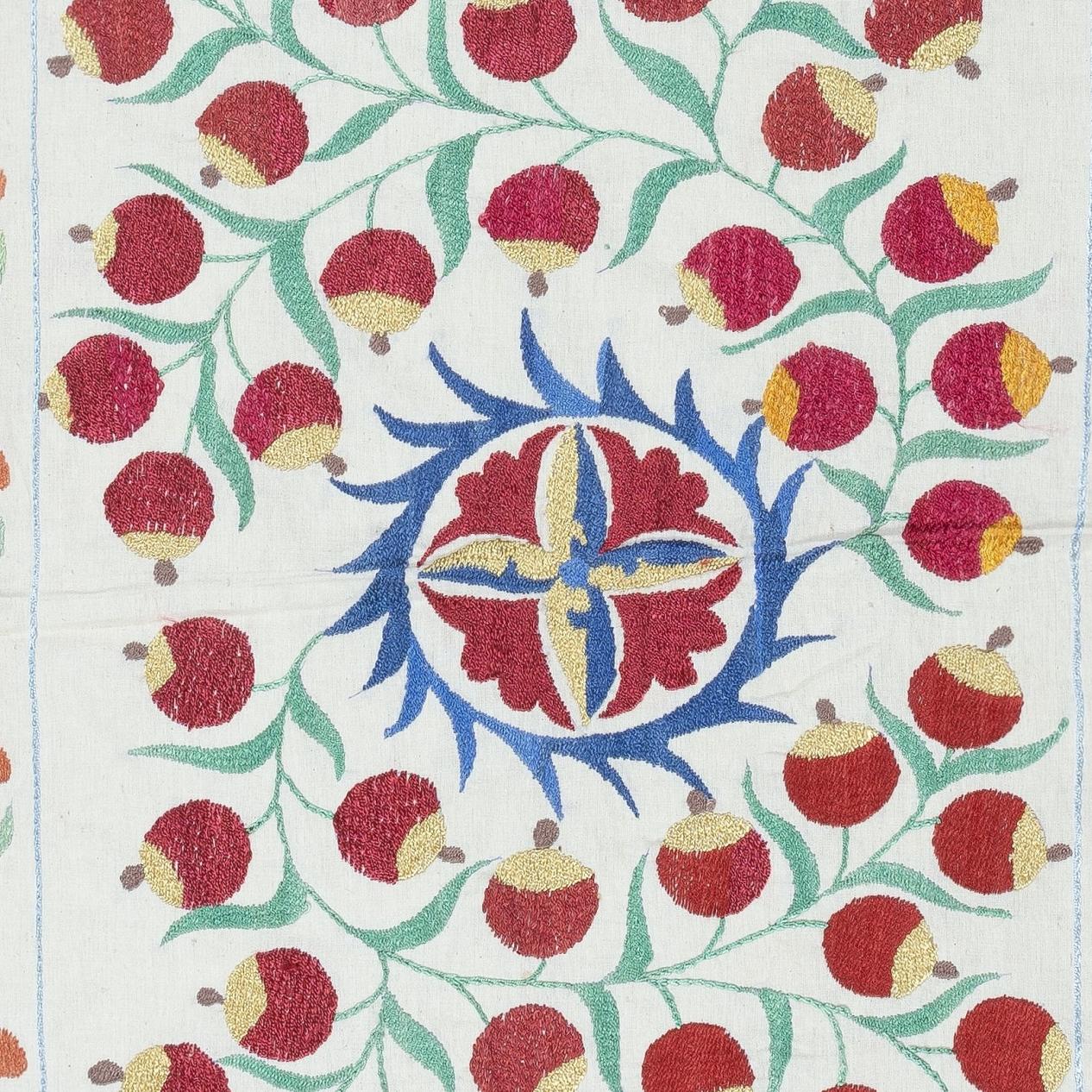 Unser osmanischer, handbestickter Suzani-Wandteppich mit Granatapfelmotiv aus Seide ist ein Meisterwerk traditioneller Handwerkskunst, reich an Geschichte und Kunstfertigkeit. Inspir...