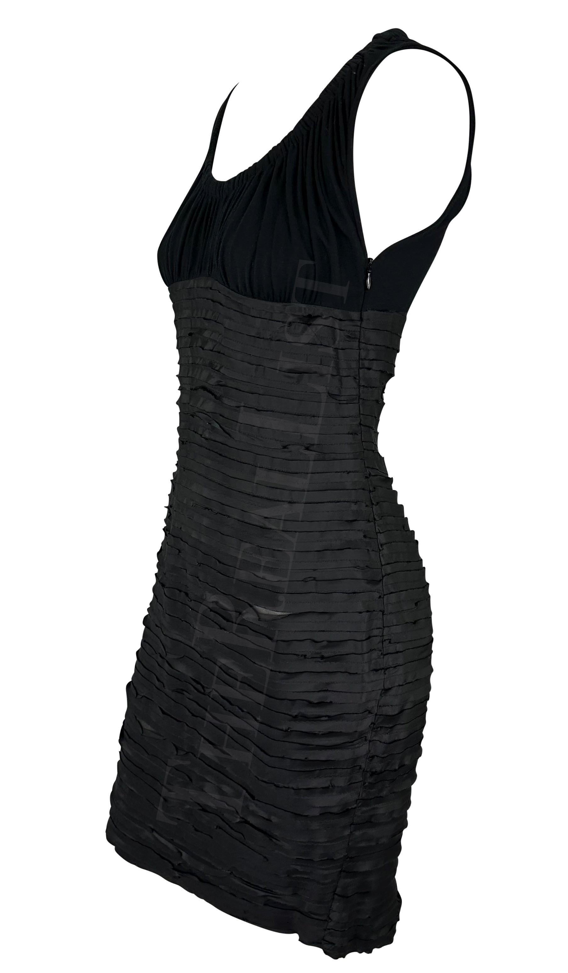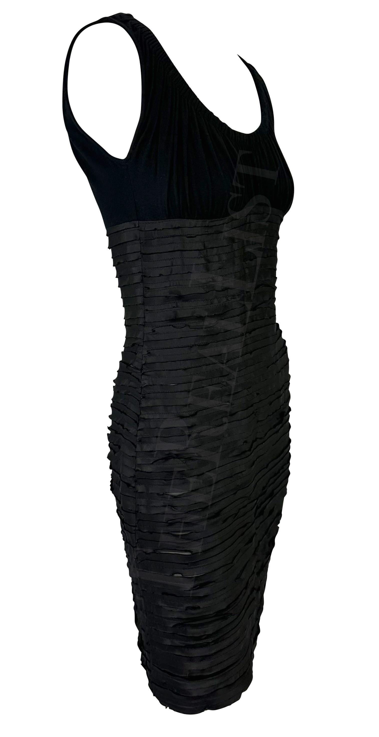 H/W 2005 Versace by Donatella Schwarzes, gerafftes, durchsichtiges Bodycon-Kleid mit Schleife