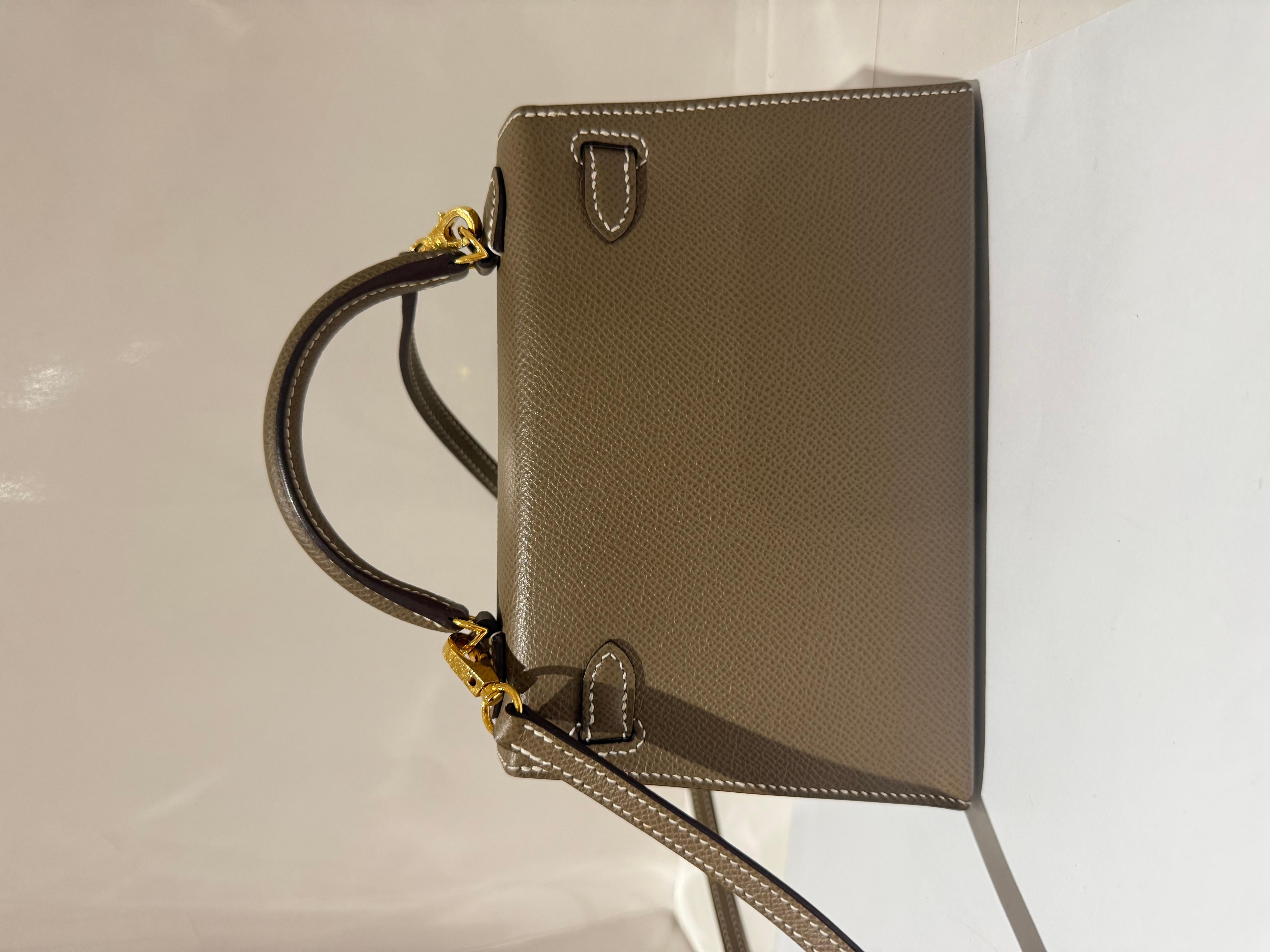 Hermes Mini Kelly Etoupe epsom mit Goldbeschlägen