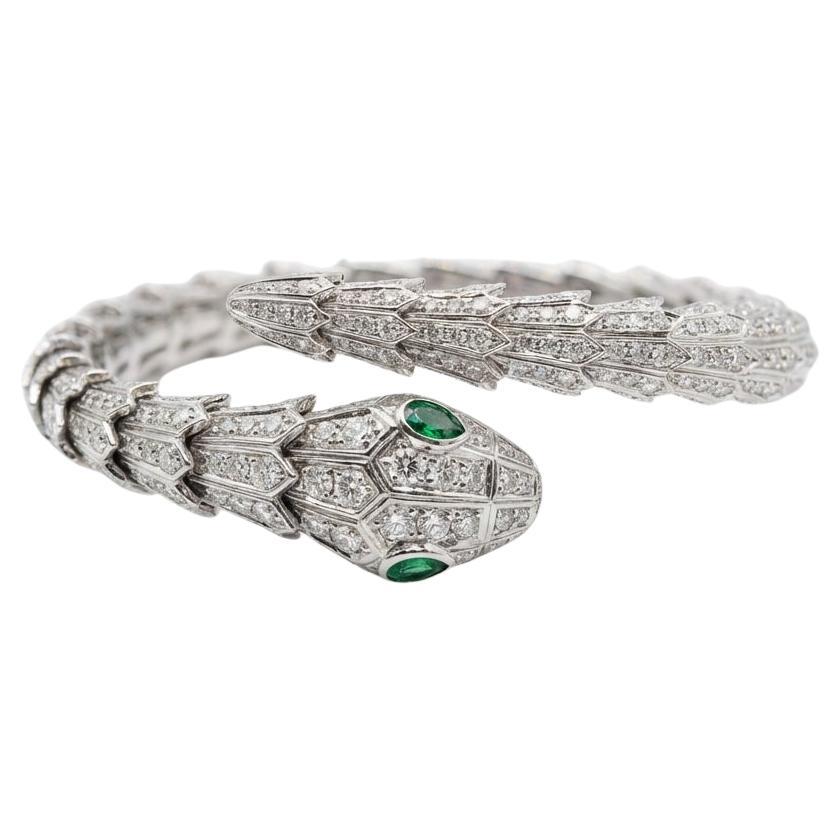 Diamant, Smaragd, Weißgold, 18-Karat-Gold