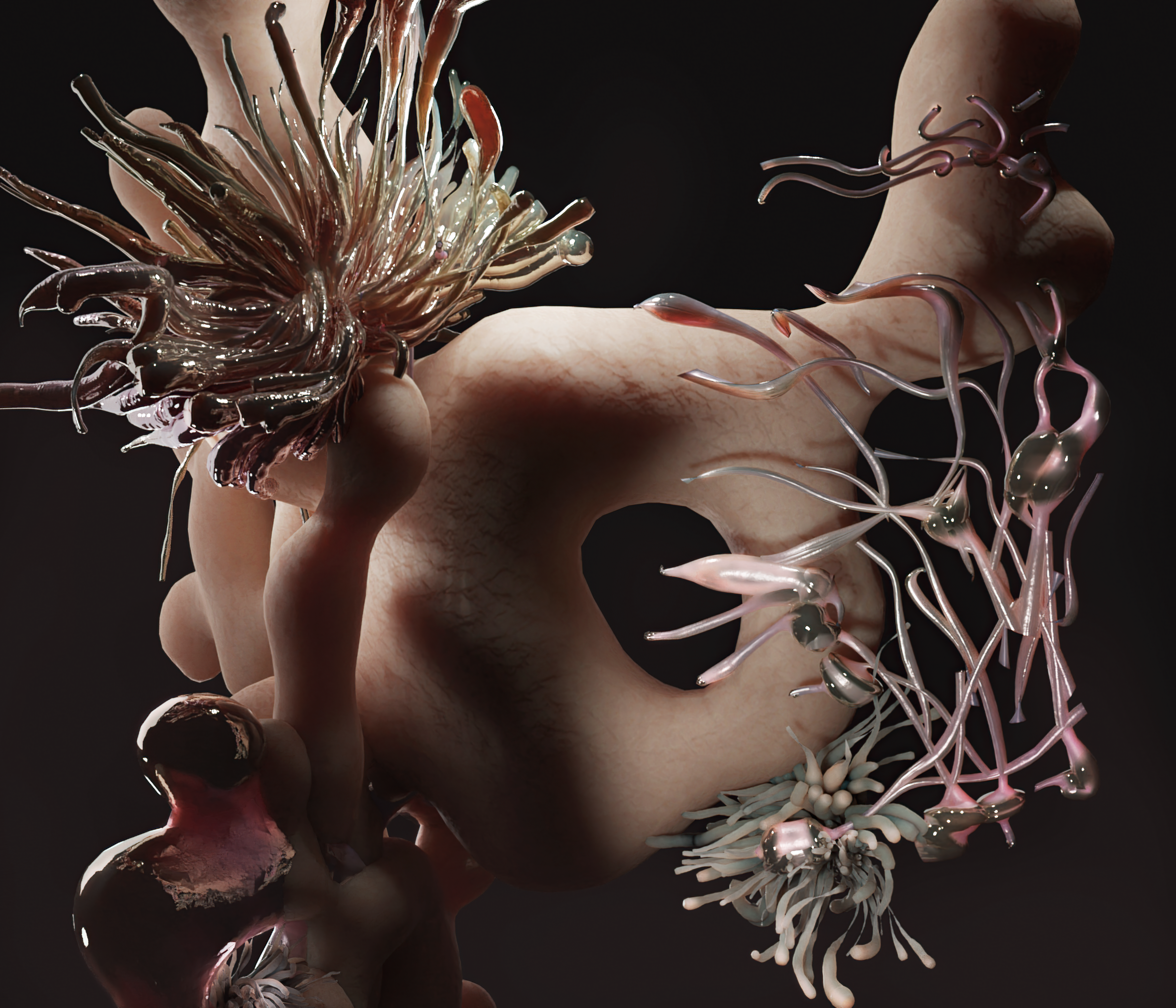 Ailin Kertesz, alias. Afr0dita, is a visual artist from Buenos Aires who specializes in the creation of digital and abstract bodies in their 3D surreal stages. She works with organic and morbid components, dialoguing between the possibilities offered by digitality and the tangible world. Currently, she studies image and sound design at the University of Buenos Aires.