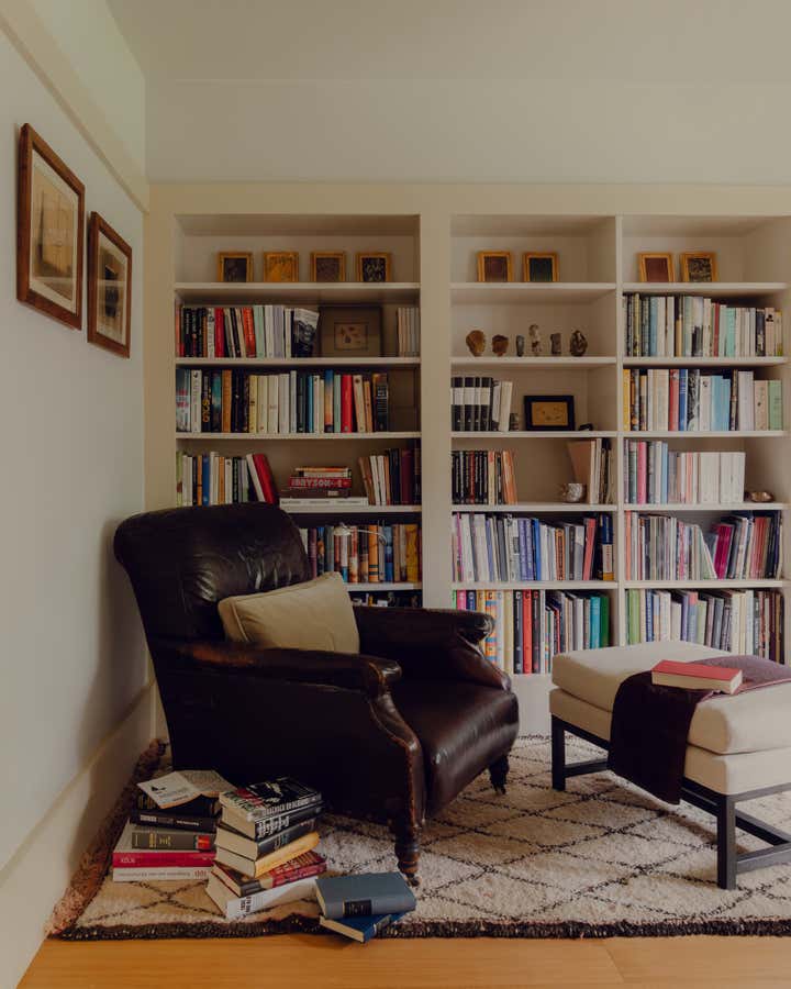 The house is a colourful, crafted and happy melange of styles and furniture enlivened by the thrum of the continual collector - alongside the art, there is Japanese pottery, contemporary ceramics, a collection of indigo textiles, a shelf of flints, a collection of tins.