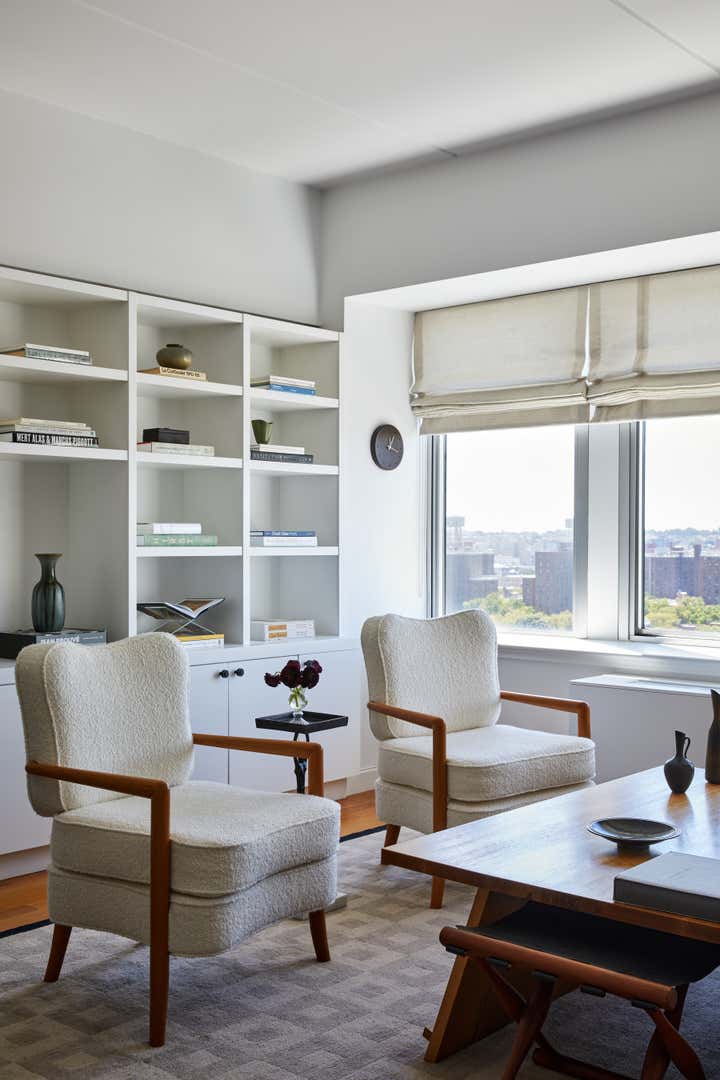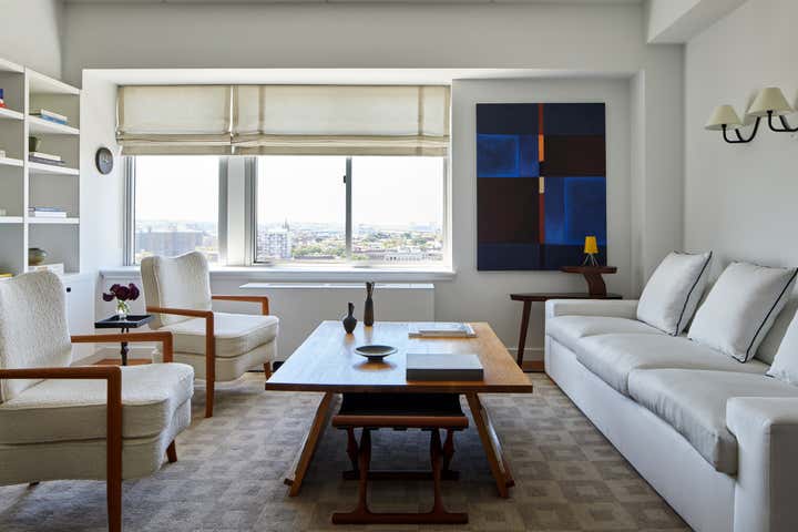 After living abroad for eight years, this client wanted to set roots in New York and create a space that highlighted their art and ceramics acquired while living abroad. Using a mix of custom and vintage pieces, we created multiple "conversation zones" and spaces for entertaining. For the warmer months, the 500sqft terrace was outfitted with custom planting and comfortable seating to take in the views of New York City.