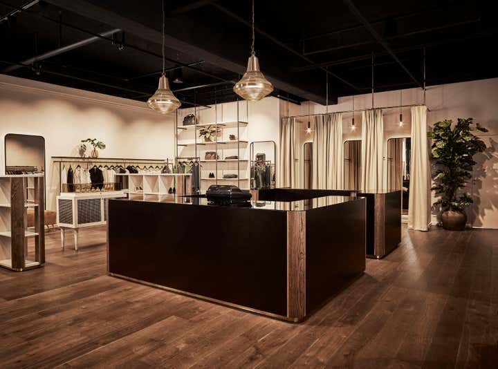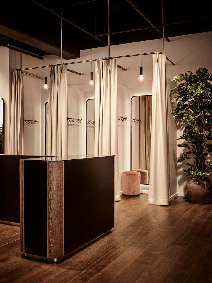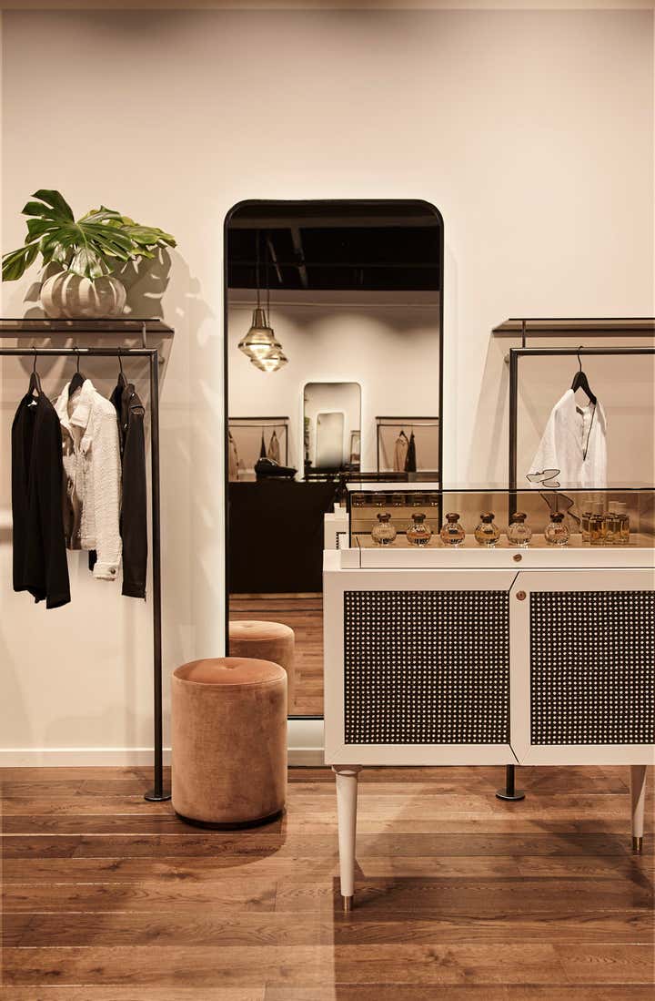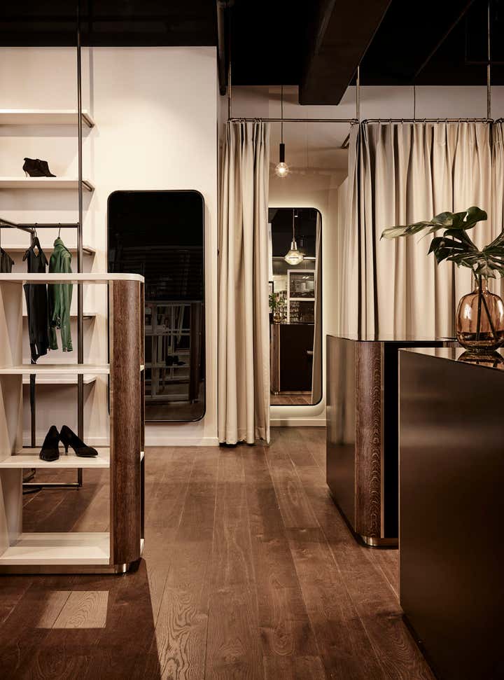 in 2018 Pernille Lind Studio worked closely with the owners to create an interior brand identity, which could sit as a strong backdrop complimenting the contemporary brands they stock such as ACNE, Iro, Forte_Forte and Isabel Marant. Bespoke joinery and retail display units were designed using raw steel, black rattan, solid oak and brass detailing. These pieces form part of the spatial character and add to the overall tailored aesthetics, which is the common thread throughout their carefully selected garments. Completion 2018