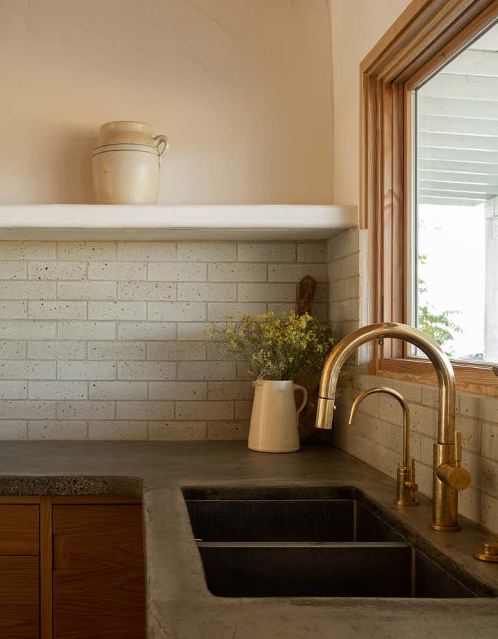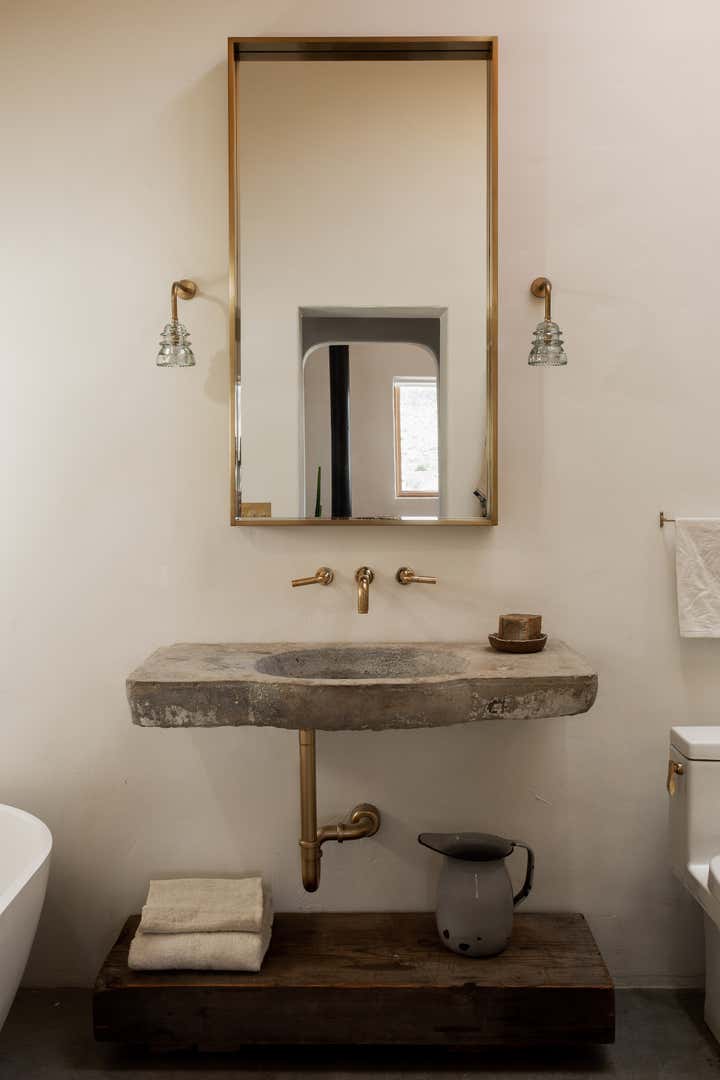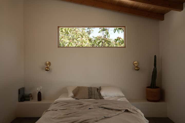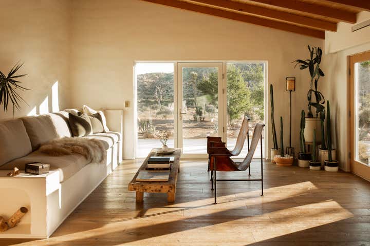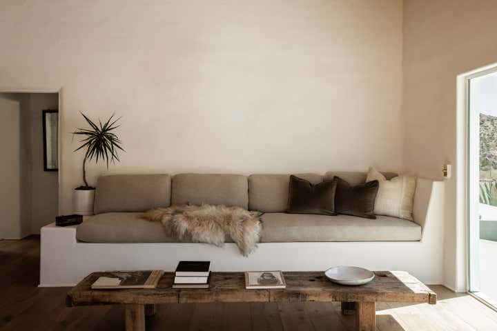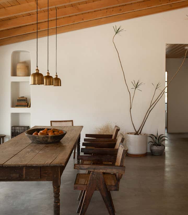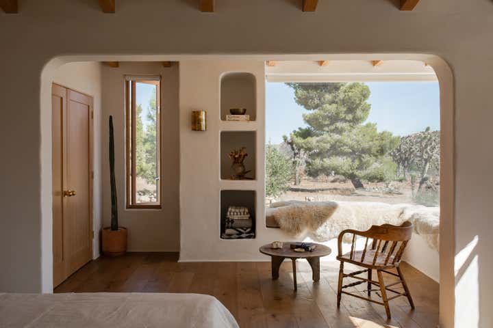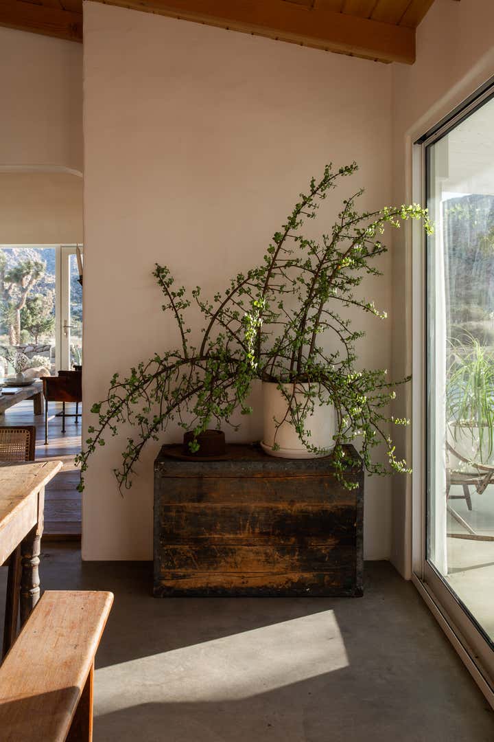 Desert Milk Adobe is a restored 1935 adobe home that pays homage to its desert surroundings, blending sustainable materials with earthy design elements. The home’s natural plaster walls, built-in furniture, and curated antique pieces create a grounded, tactile atmosphere, embracing both the beauty of the desert landscape and the simplicity of its architecture. Every detail feels connected to the home’s origins, offering a serene, soulful retreat.