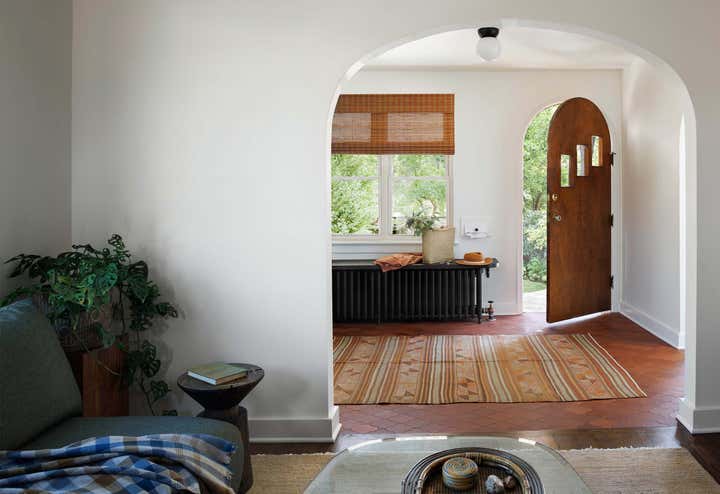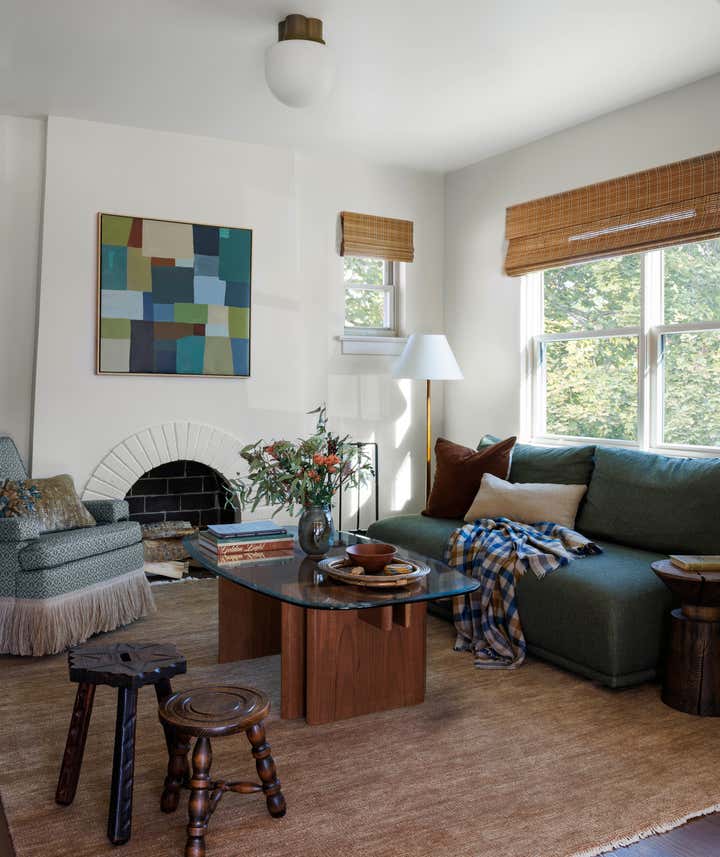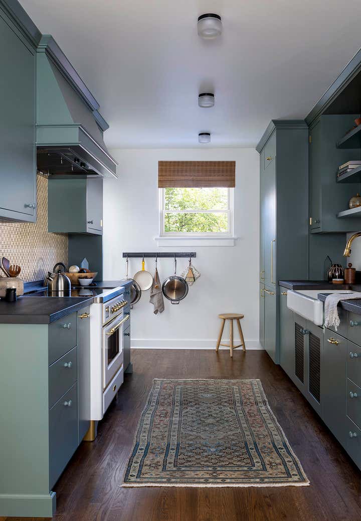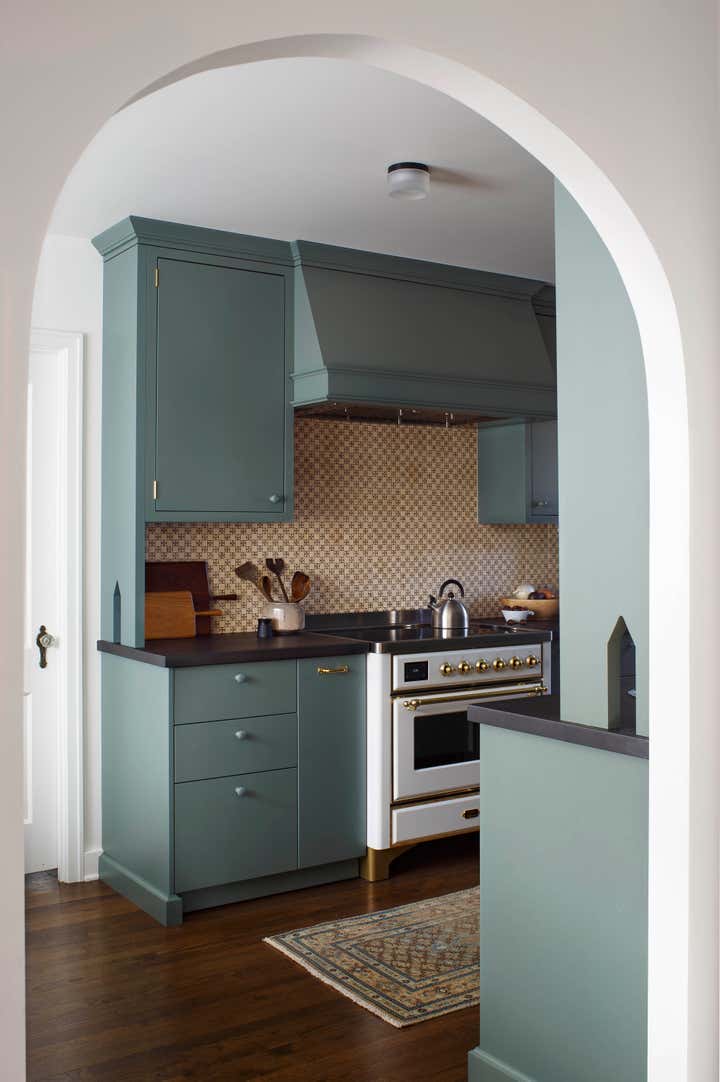 Creative details in the kitchen like mesh doors, wood knobs, and peek-a-boo cut outs were researched to maintain authenticity to the 1930s. Both creatives, our clients wanted their personalities to shine through which we captured the bold uses of color and pattern that evoked their childhood.