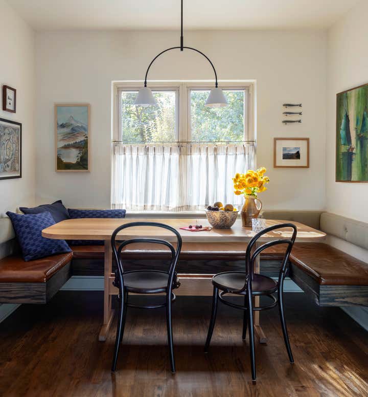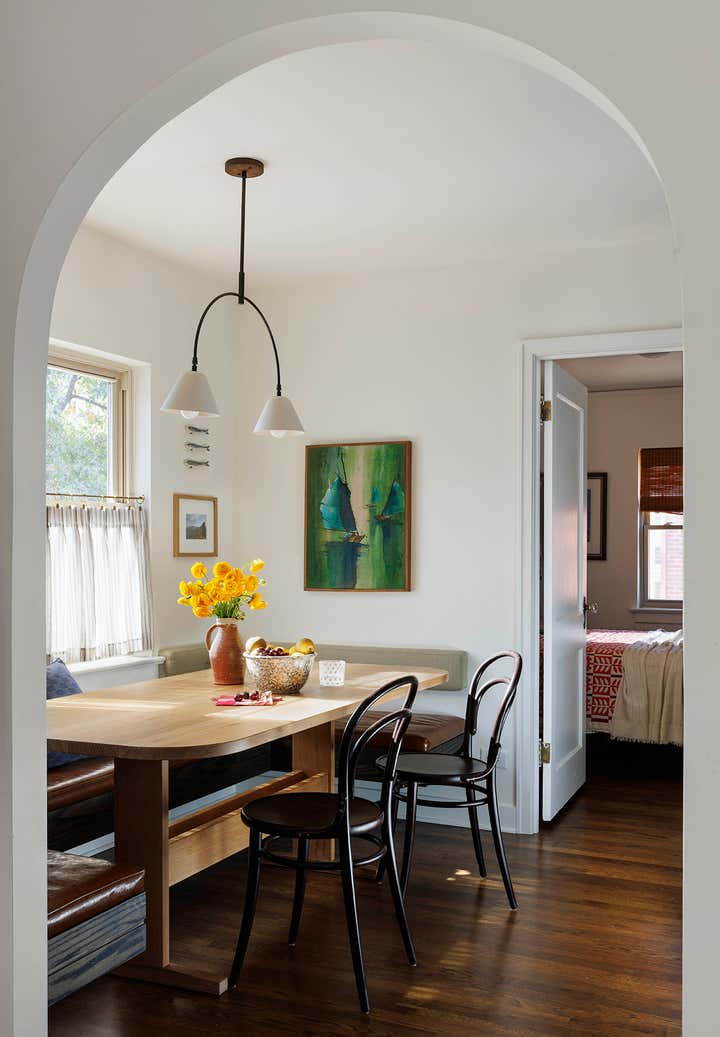 In this project, every inch was precious. Our team maintained the original 3” interior wall thickness that required creative plumbing, greatly expanded the kitchen into a galley, added a built-in dining area, and divided the existing living room in two to create a separate mudroom entrance.