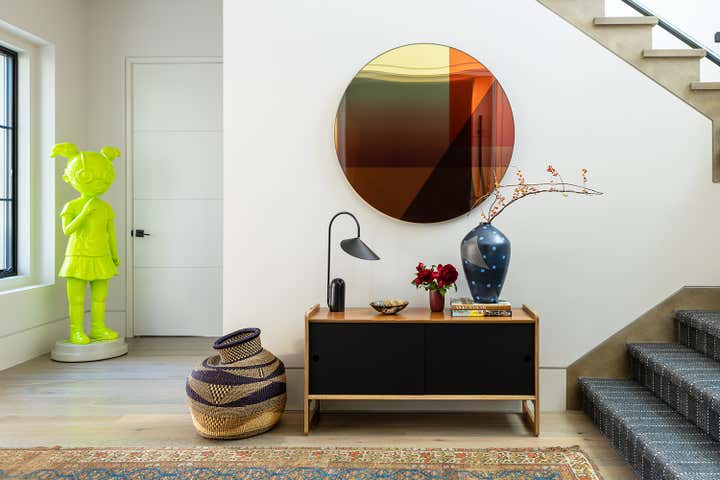 When we arrived to photograph this project the dining room was filled with balloons from a recent birthday celebration, and we kept them in the pictures because they speak to the owners joyful and considerate nature. Everything here is thoughtful and intentional; custom furniture speaks to the husband’s tall stature, a fledgling BIPOC art collection celebrates under-represented communities, and the dining room seats 12 for their many friends. This was one of the projects that kept us the busy during the first bleak months of the pandemic, and when we saw our very first Zoom Room on ESPN one evening it was a true milestone for RAD.