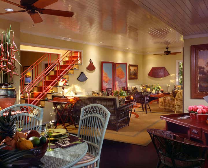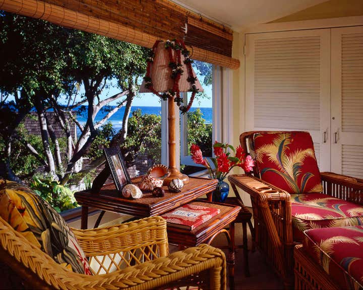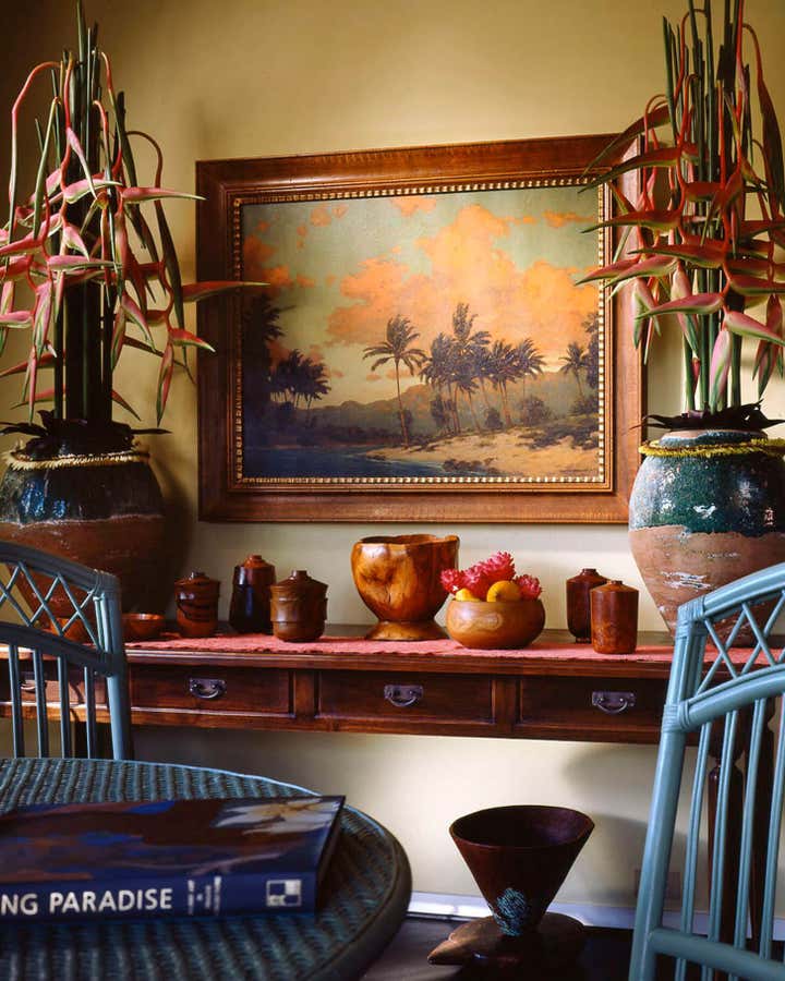 This was our "Honolulu HIdeway" as publish in Architectural Digest Magazine and photographed by the wonderful photographer Durston Saylor. We created a tropical palette and a vintage Hawaiiana style. We even created a new color palette for Maine Cottage furniture. We used pan-asian antiques indo colonial furniture.
