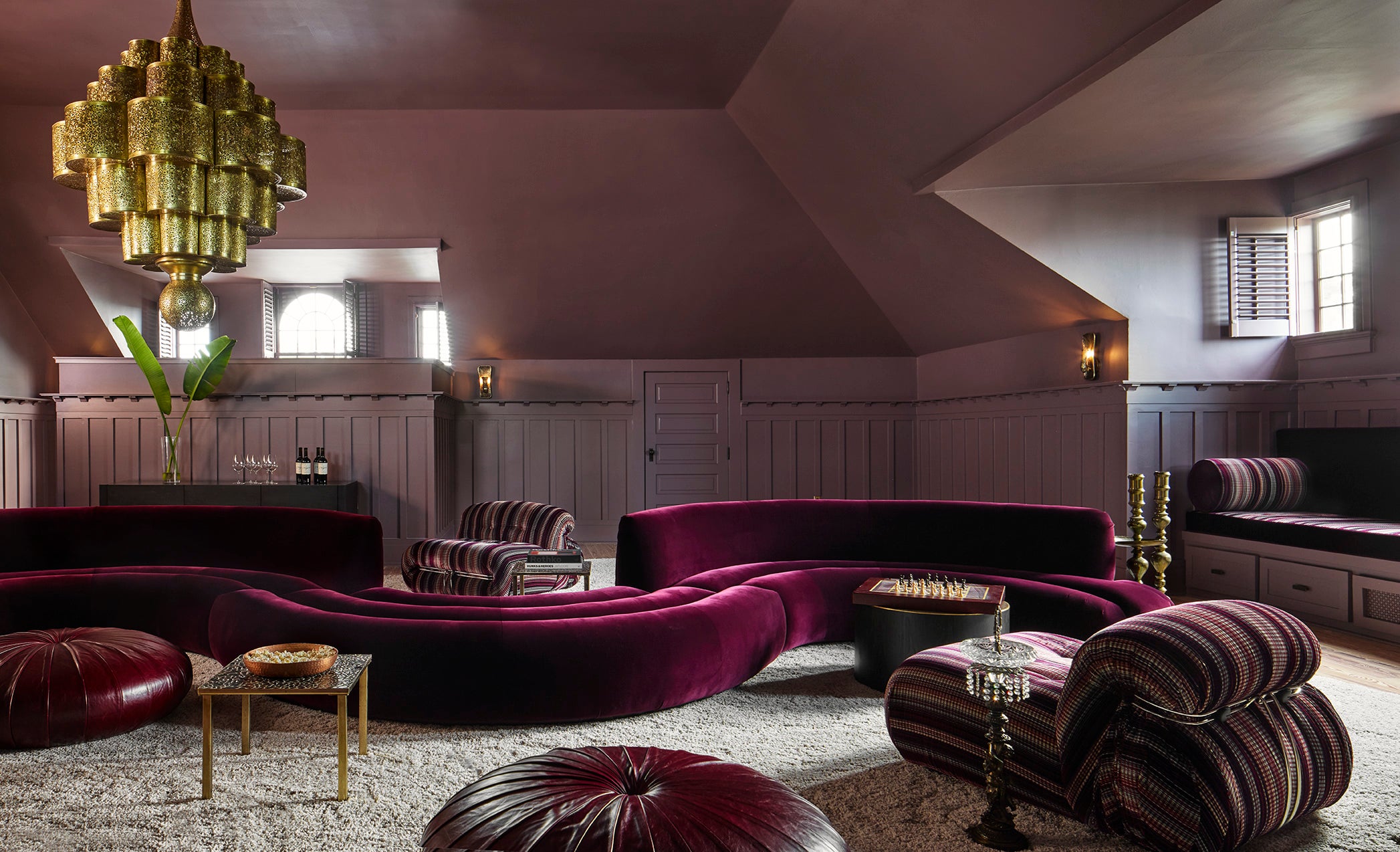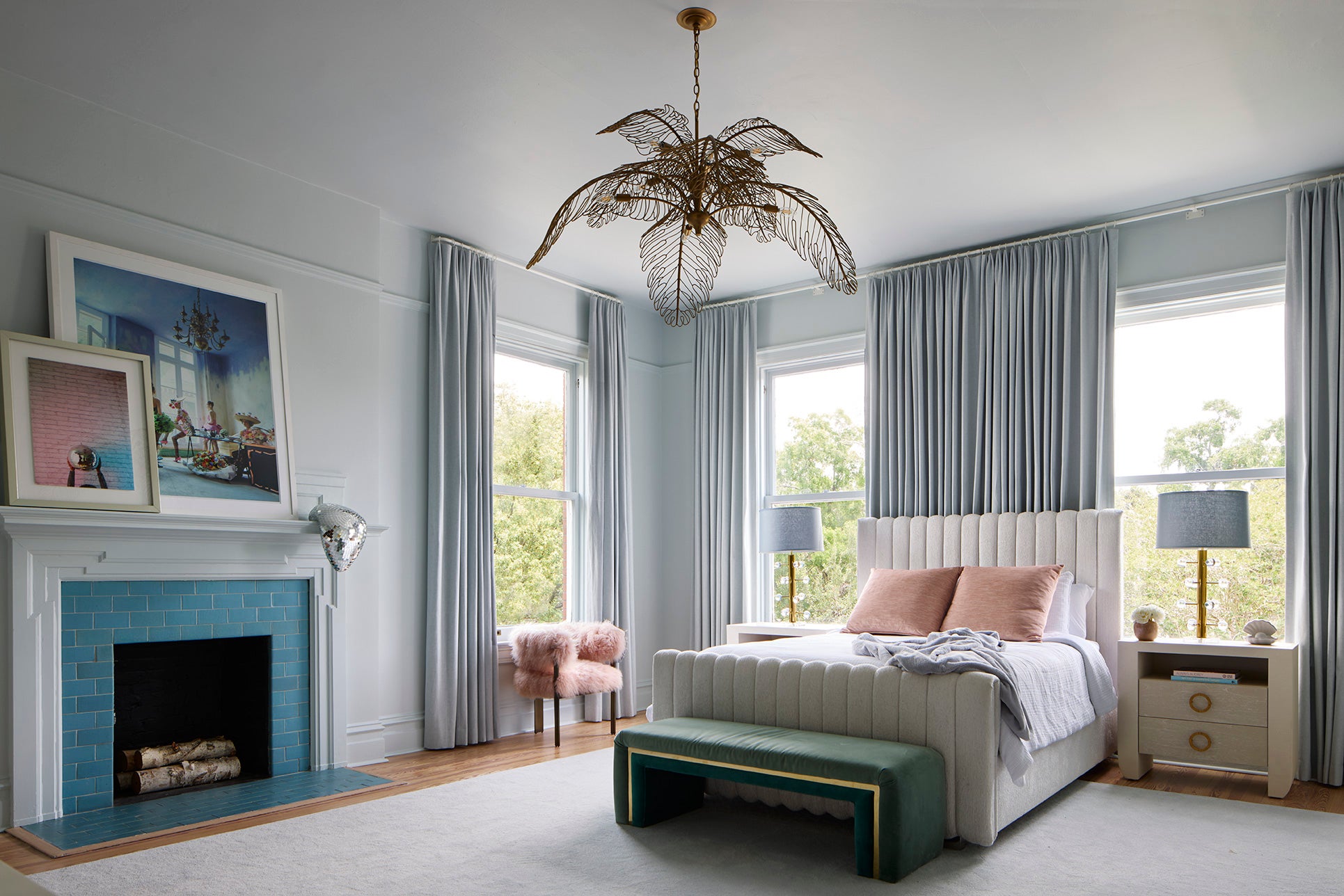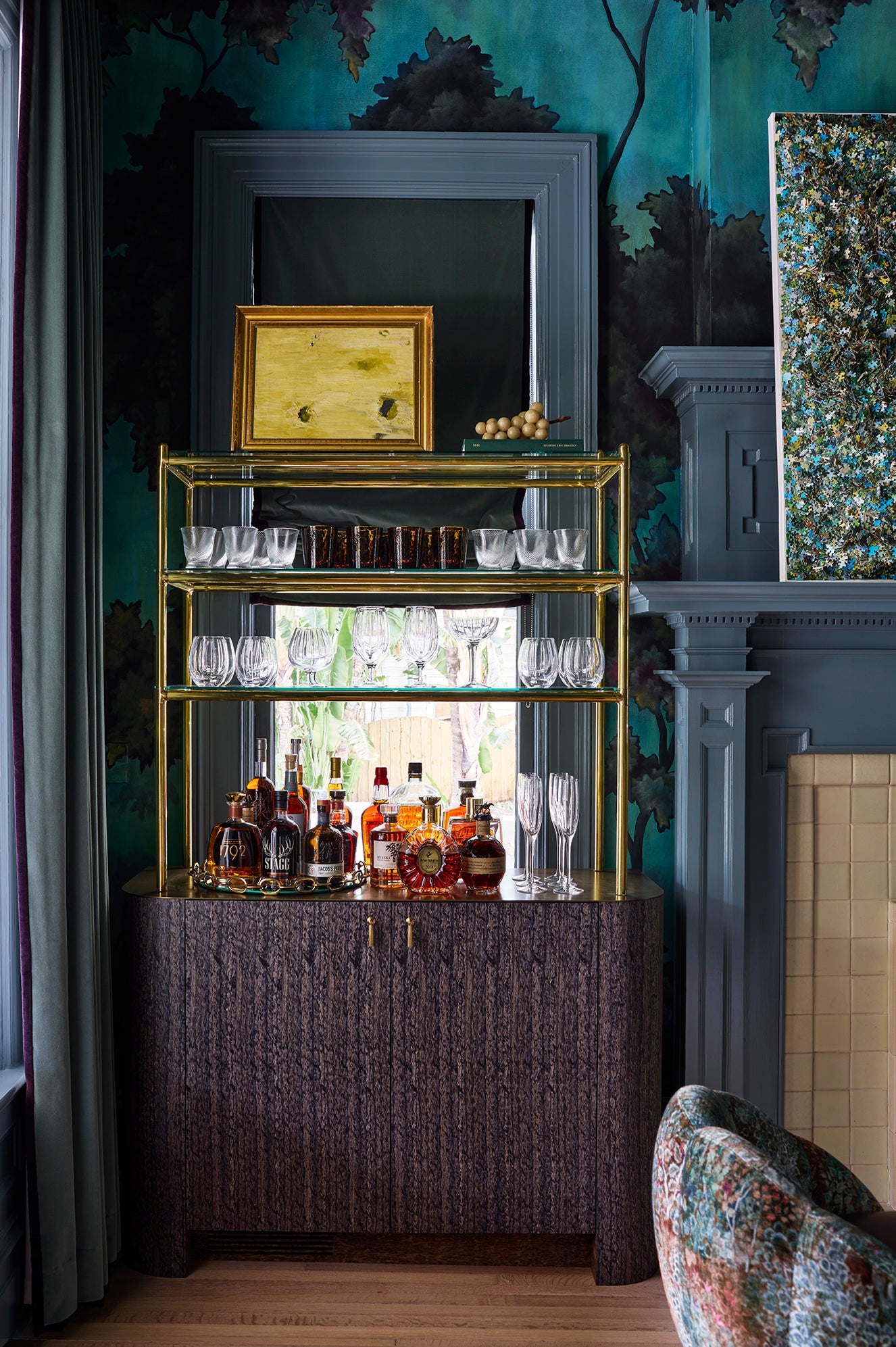 A 1910 residence was transformed into a moody, layered retreat inspired by the glamour of London’s grand hotels. Original stained-glass windows and eight historic fireplaces guided a palette of rich, dramatic hues, while contemporary touches kept the home fresh for a blended family of six. Gathering-focused spaces—like the hand-painted Bar Lounge with a fluted Calacatta Viola marble bar—invite both lively entertaining and quiet moments. The updated kitchen flows to a versatile breakfast room, while whimsical details enliven the kids’ third-floor retreat. The result is a home that balances tradition and innovation, honoring its past while embracing the present.