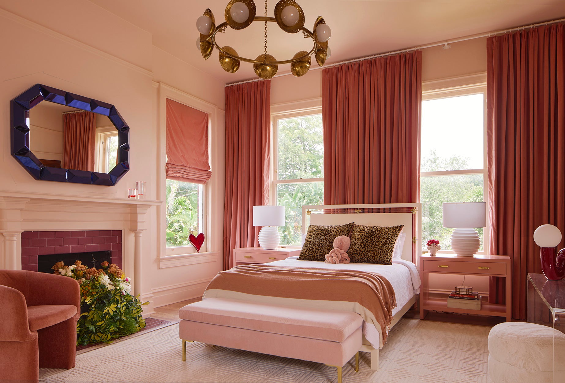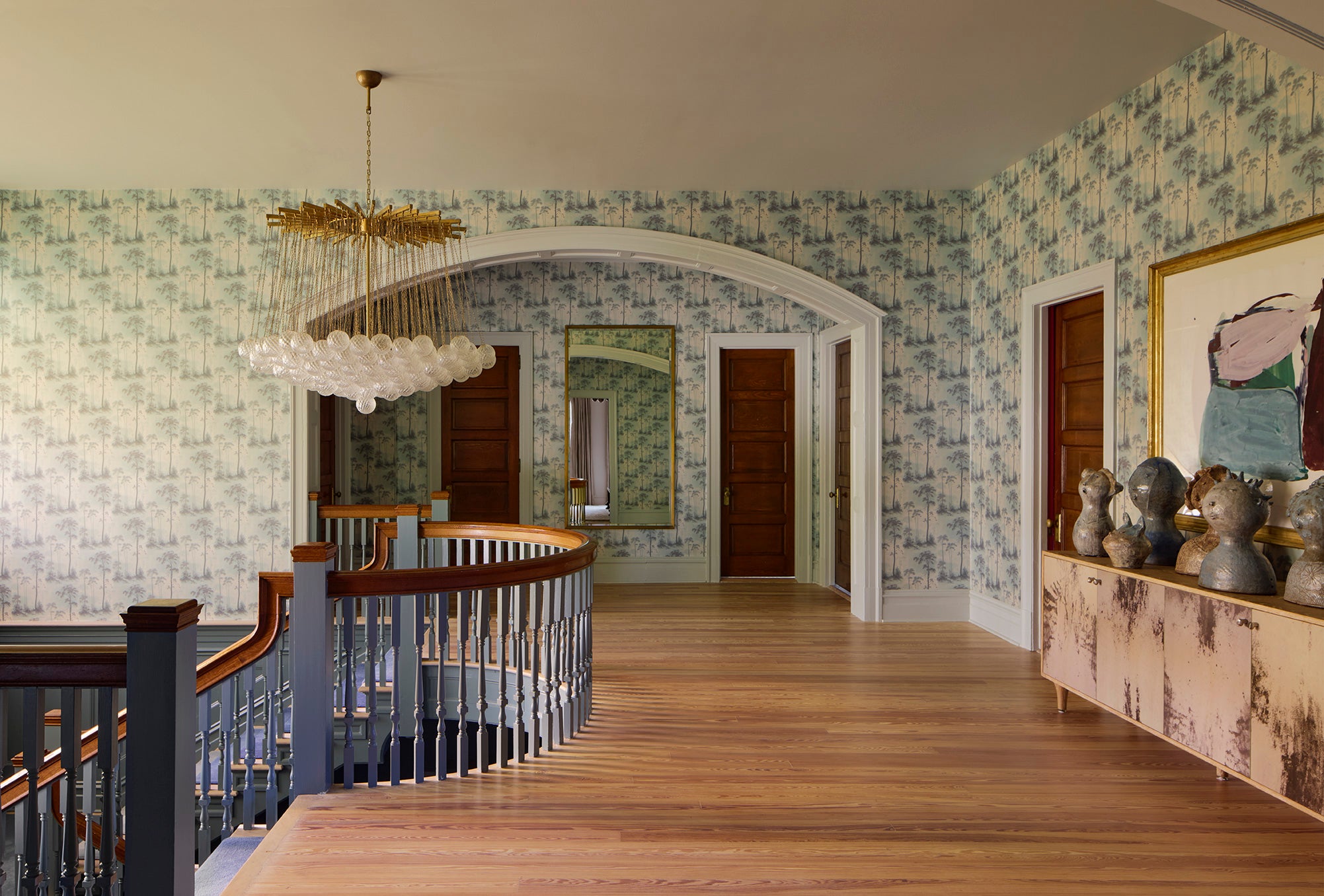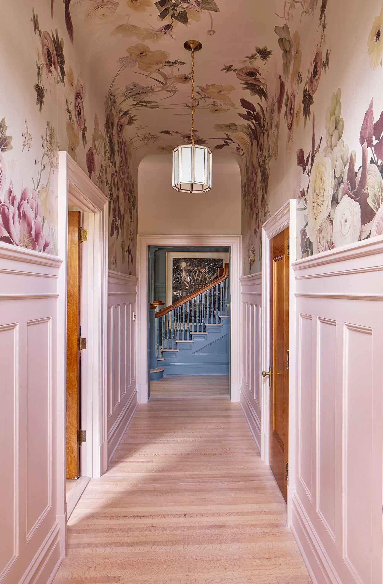 A 1910 residence was transformed into a moody, layered retreat inspired by the glamour of London’s grand hotels. Original stained-glass windows and eight historic fireplaces guided a palette of rich, dramatic hues, while contemporary touches kept the home fresh for a blended family of six. Gathering-focused spaces—like the hand-painted Bar Lounge with a fluted Calacatta Viola marble bar—invite both lively entertaining and quiet moments. The updated kitchen flows to a versatile breakfast room, while whimsical details enliven the kids’ third-floor retreat. The result is a home that balances tradition and innovation, honoring its past while embracing the present.