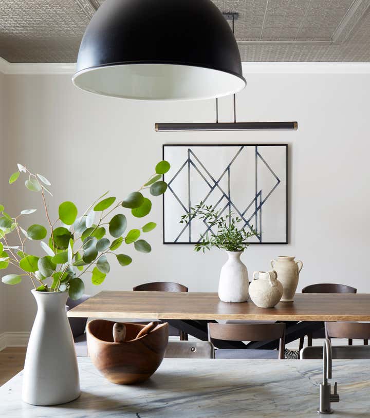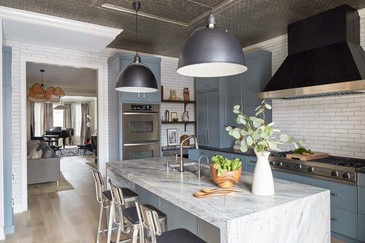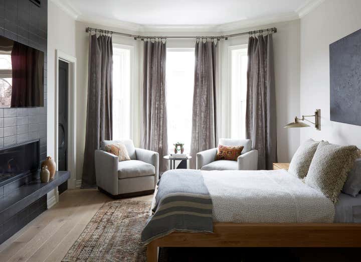 The overall design aesthetic for this Graystone, located in Chicago’s Logan Square, was based on the client’s wish for an industrial modern style. Imparfait Design Studio adjusted the client’s original concept to create a warmer home environment with vintage character while including modern industrial touches. Almost the entire home was gutted. Imparfait redesigned the home’s two fireplaces and added new floors, stairs, casings and crown moldings to transform the home from an 80s open concept to a traditional Graystone floorplan with distinct rooms. Imparfait removed wood medallions on the floor and lots of tray ceilings, columns and late 80s arches but kept the unique tin ceiling in the kitchen. The design team overcame COVID challenges and a flooded basement to create a home that seamlessly blends vintage history with modern style.