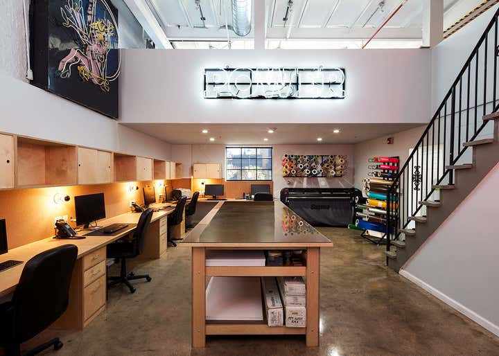 Renovation of an old auto-garage and warehouse for the new Hoboken home of a neon sign company relocating from Manhattan. Program included a printing studio, design studio, executive offices, kitchen, and a workshop for one of the last tube benders of New York City.