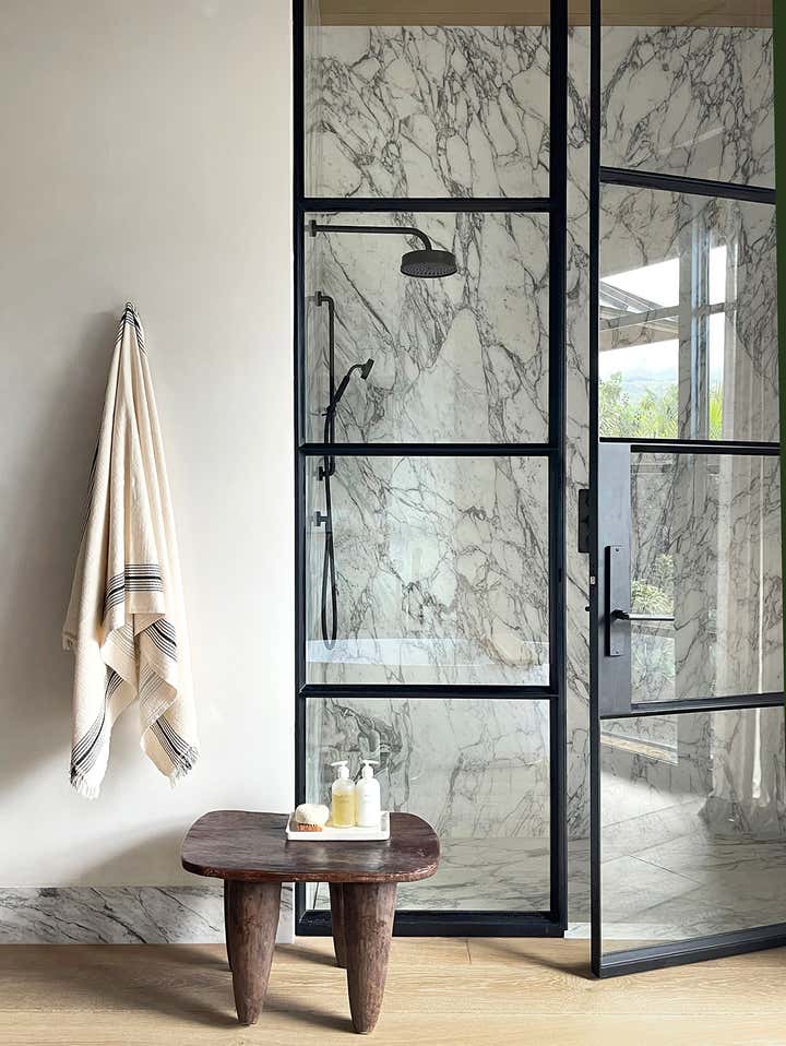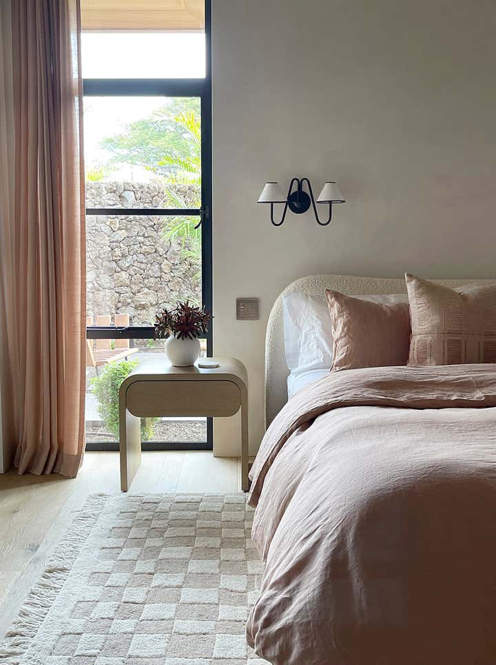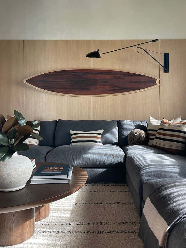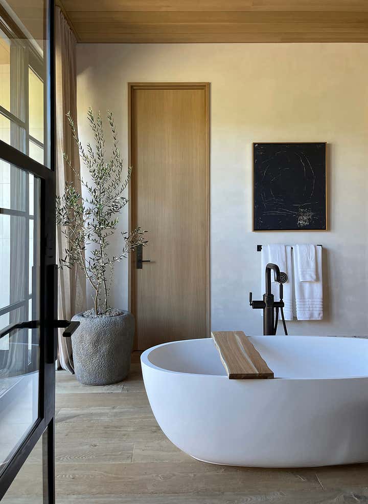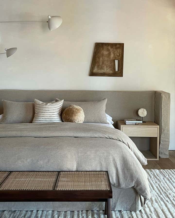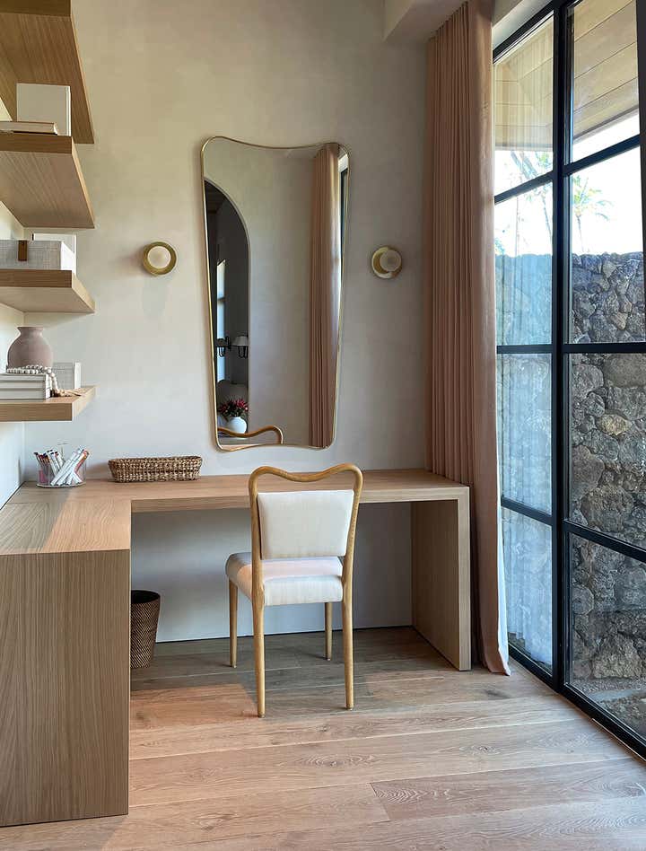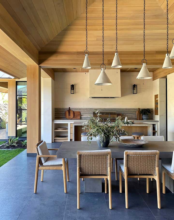 The homeowners asked designer Nam Dang-Mitchell to create airy, serene interiors that would promote a lifestyle best described as barefoot living. Inside, it feels breezy and laid-back, thanks to the plaster walls and wood-clad ceilings that add understated warmth. A material mix of stone, soft linens, woven fabrics and unfussy slipcovers is beachy yet sophisticated. The thoughtful, eclectic mix of vintage and new furniture and accessories also reflects the client's discerning style.