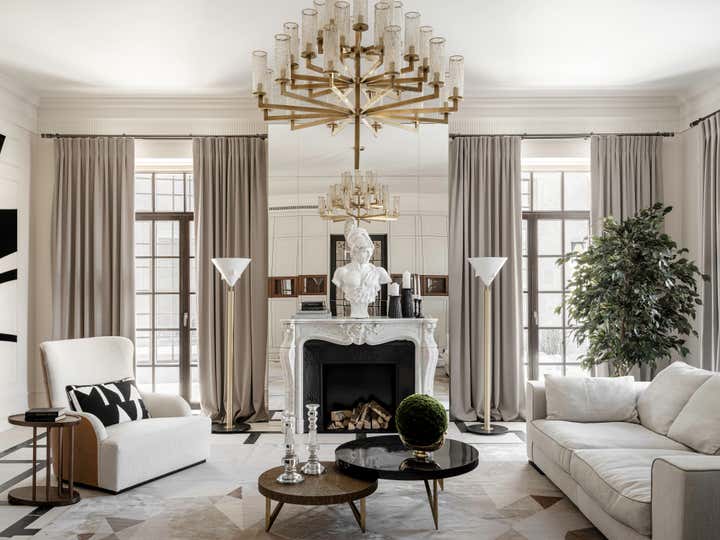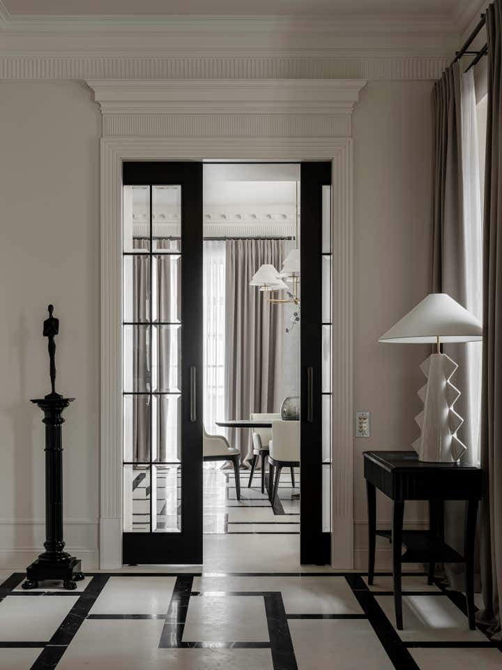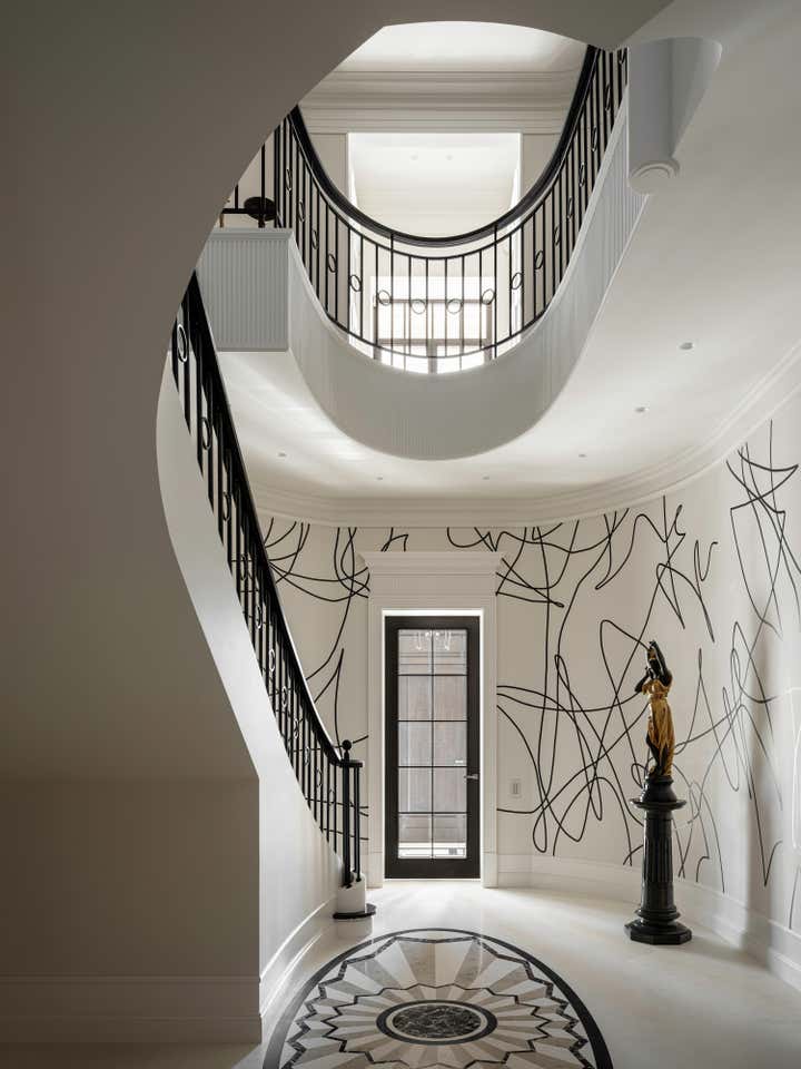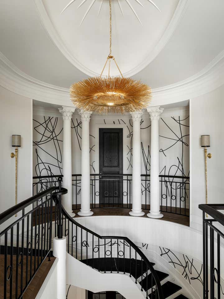 This design project was based on paradox. To begin with, the customers bought a classical and almost Palladian house with four columns built into every facade. But their dream was a contemporary American interior filled with pieces of avant-garde art…