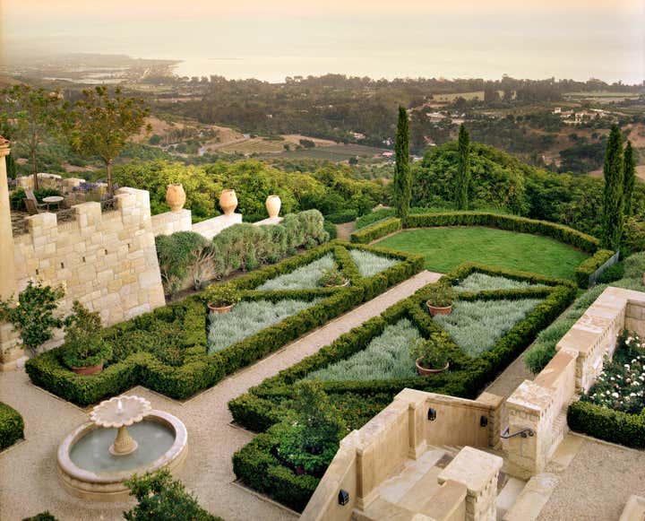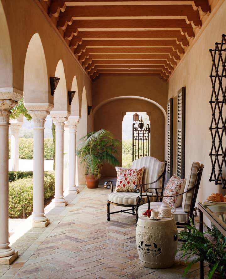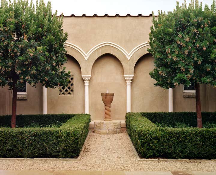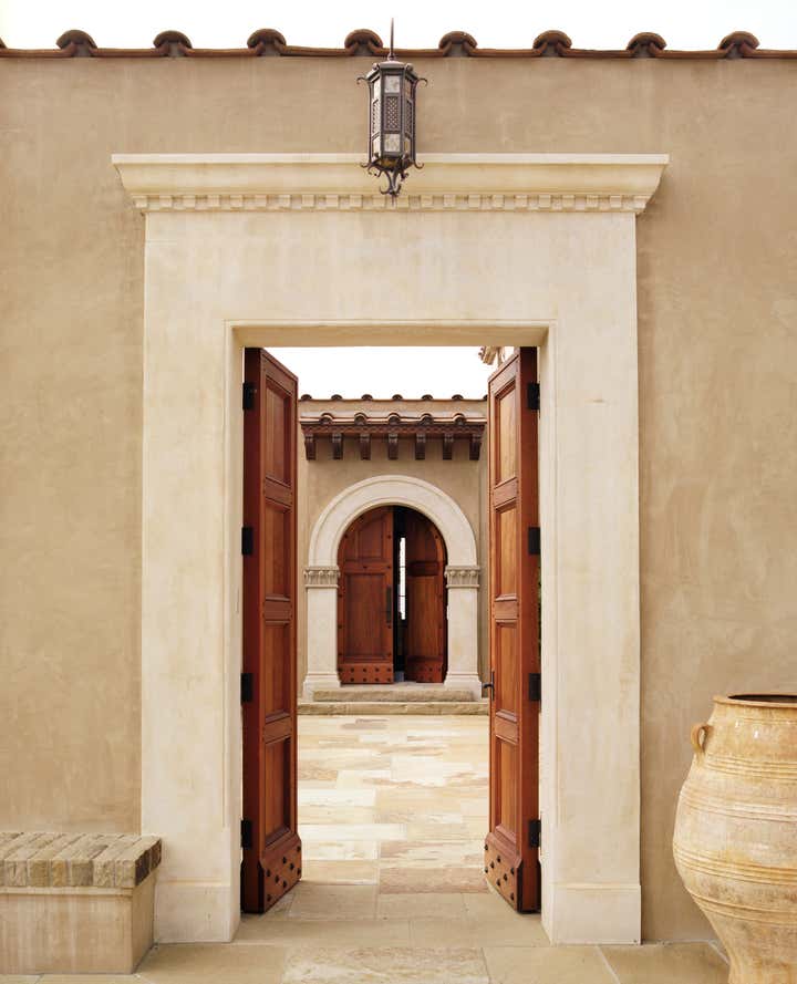 The design inspiration for the 10,000 square foot stone and plaster house emanated from the owners' travels in the hill towns of Italy. Combining architectural elements of a grand villa with those of a rambling monastery, the intention was to meld various materials and styles - hand carved stone detailing, Moorish columns, inlaid marble floors, exotic grillwork, and Venetian plaster - while the palette was kept quiet and relatively neutral. The owners’ international travels have drawn them to collect primarily Asian antiques and artifacts which we incorporated into the design to reflect their taste and travels. Over the course of the project, we added Italian and Spanish pieces to their collections which would speak to the style and location of the house. It became a wonderful five year project culminating in a tranquil villa surrounded by parterre gardens, fountains, rose gardens and the ceaselessly breathtaking vistas.