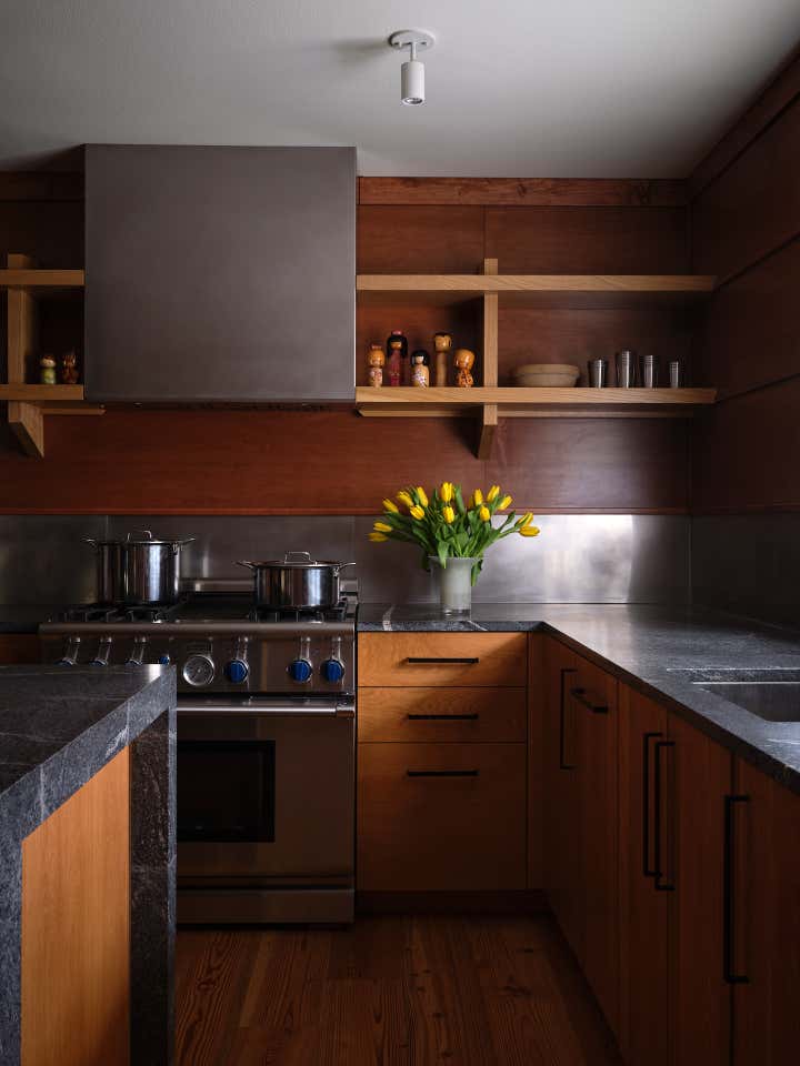 functional sculpture artist, and a florist, respectively. While nook-spaces and a refreshed studio space offer solitude, ample kitchen and dining areas invite connection and satisfy the clients’ desire for the house to “feel like an open invitation.”