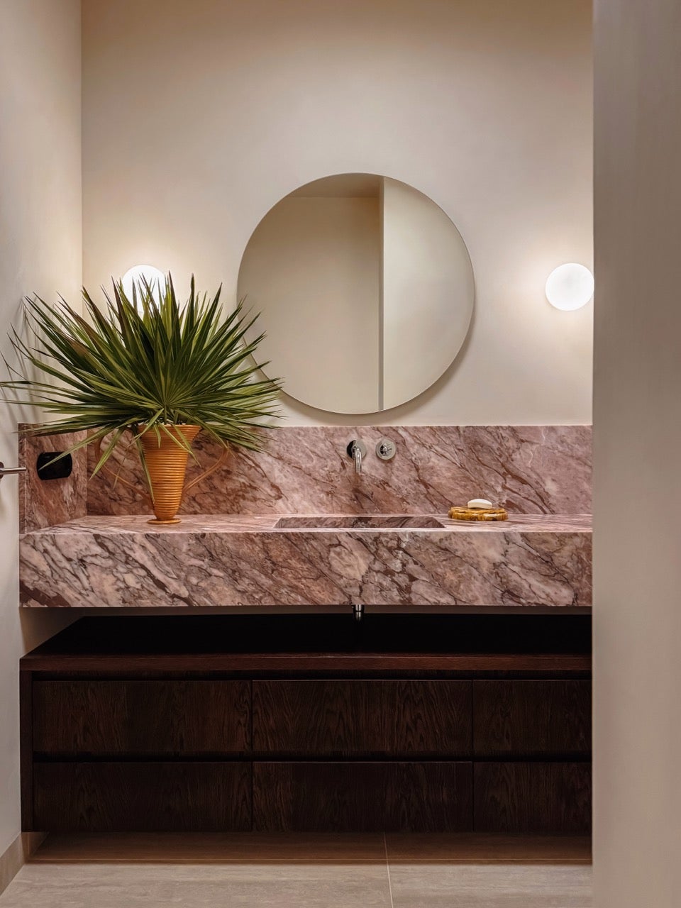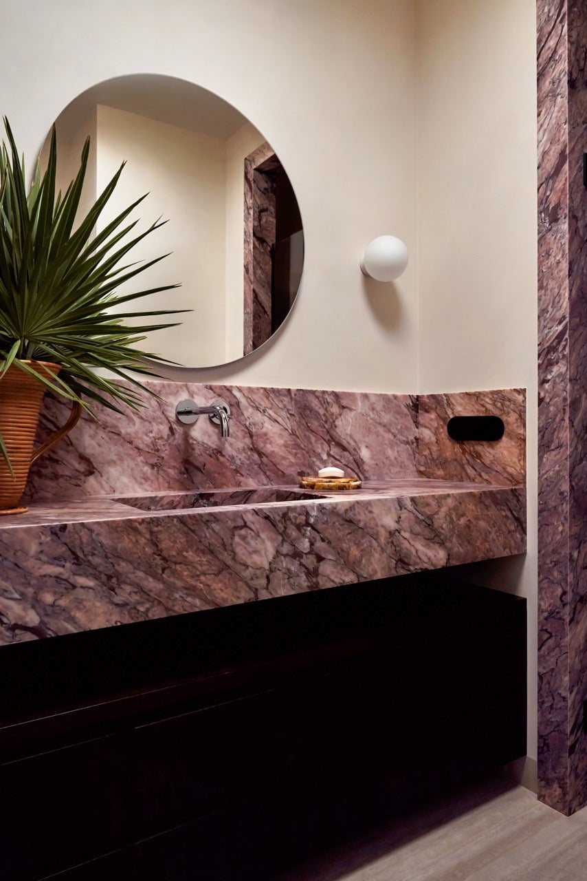 Using natural stone and refined materials, the interior embodies quiet elegance and a feminine energy that fills every corner.