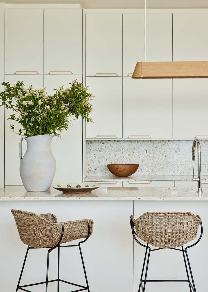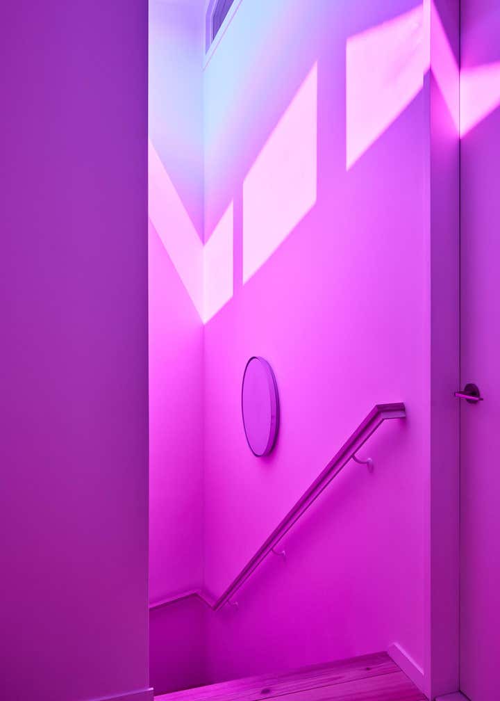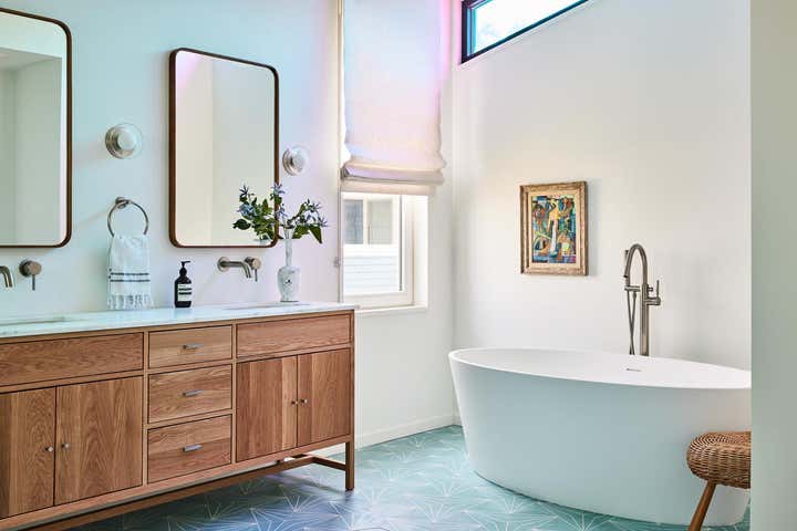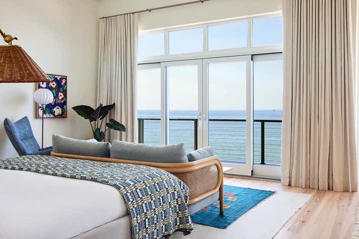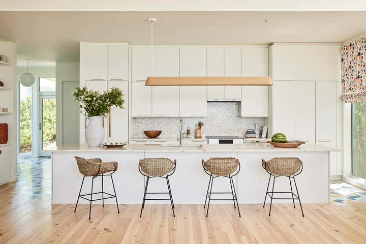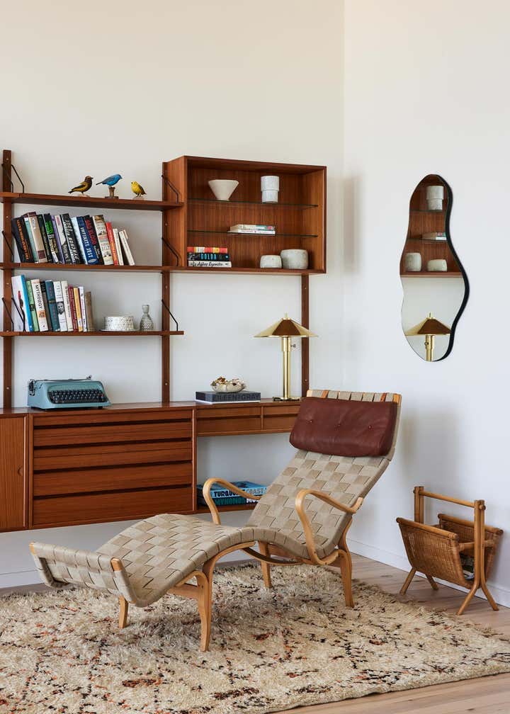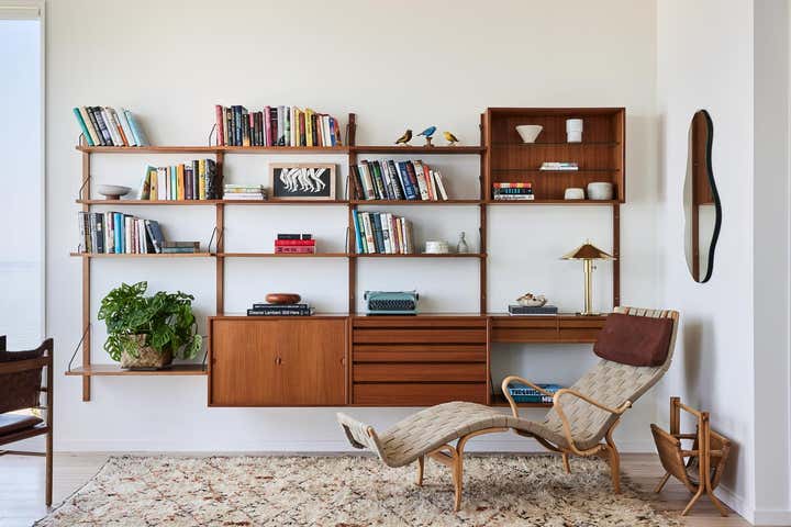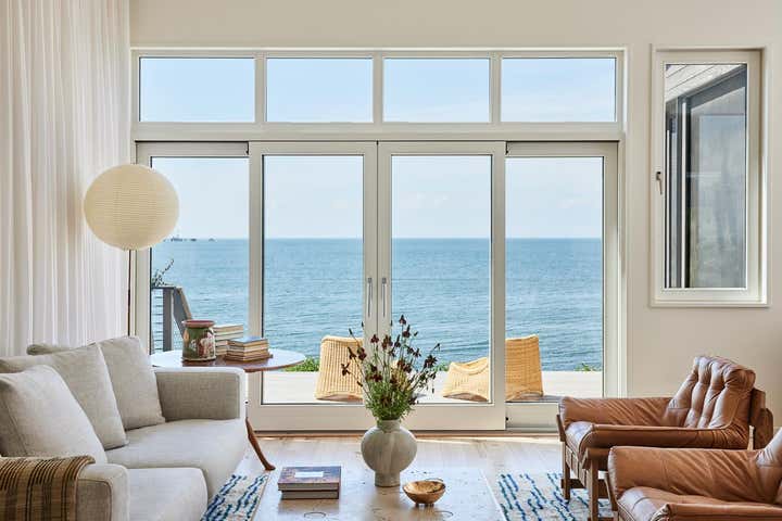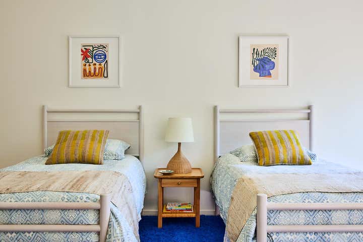 This home is a place for the family to recharge, connect with nature and a vehicle to inspire creativity for the owners, one of whom is a writer. The use of color inside is a foreground to the stunning view of the blue sky and water and adds balance and interest to the interior. The blue color is a thread that continues throughout the house. The home is also a vehicle through which to start a collection of important design pieces. We love the opportunity to blend high design with more affordable and practical pieces, so you can see a vintage Noguchi lamp from the 1950s paired with a sofa from West Elm.