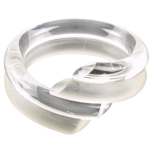 Harriet Bauknight hat für Kaso dieses auffällige Armband aus Lucit oder Plexiglas entworfen. Die übergroße, klare und starre Manschettenform wird von einem großen geometrischen Ornam...
