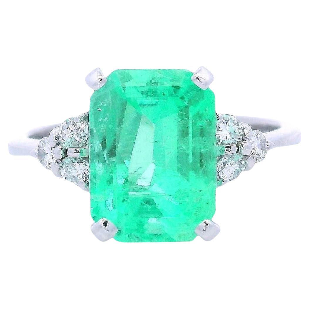 4.30 Karat Natürlicher Smaragd und Diamant 14K Massiv Weißgold Ring