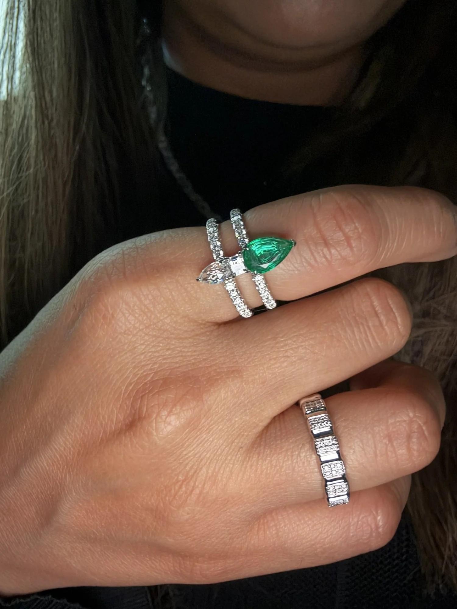 5 CT Significant Emerald Solitaire (Birnenform) und Diamantring mit Brillantschliff