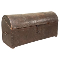 Antique studded travel trunk dating from the 18th or 19th century and also used in the past as a travel chest, travel chest or wedding trunk.