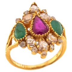 ANJANEY JEWELRY Estate Indian 22k Ruby, Emerald, & Diamond Ring
