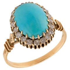 Victorian 18k/Sterling Silver Turquoise & Diamond Halo Ring