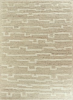 This handcrafted rug showcases a refined balance of texture and tone, featuring an abstract composition of raised ivory motifs set against a warm beige ground. The design is created ...