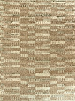 Minimalist Handmade Wool Rug in Natural Beige with Abstract Linear Composition