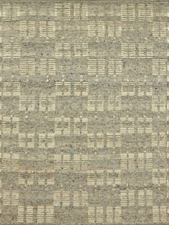Handmade Textured Wool Rug in Grey and Natural with Subtle Mosaic Pattern
