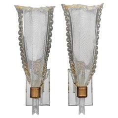 Pair of Murano Mid-Century White Latticino Sconces, Seguso Attribution