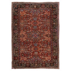 Antique Persian Mahal Rug Hand-Knotted Wool – Terracotta & Navy Floral 9 X 12