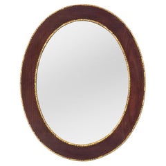 Antique Oval French Mirror in Oak Veneer with Gilding Decoration, circa 1935