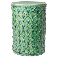 Blue and green glazed ceramic stool or table by Sophy Mckeith.