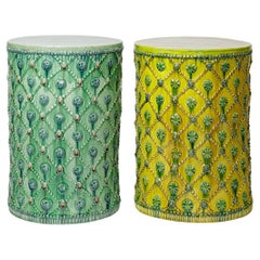 Pair of glazed ceramic stools or tables by Sophy Mckeith.