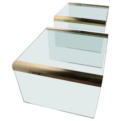 Pr. Glass and Brass Side Tables by Leon Rosen for Pace c. 1970's