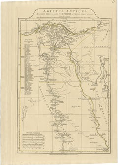Elegant antique map depicting ancient Egypt, extending from the Nile Delta through Upper Egypt to Nubia, w...