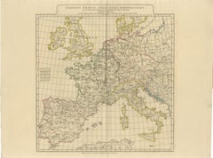 Elegant antique map depicting Western Europe in a transitional period between classical antiquity and the ear...