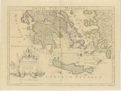 Elegant antique map depicting southern Greece and the Aegean world, covering the Peloponnese, ...