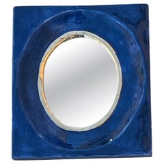 Rare " Amélie" mirror, blue glazed earthenware enhanced with crackled gold.