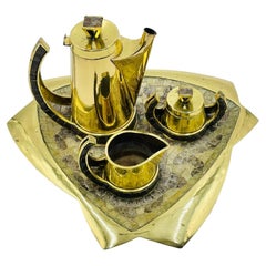 Mexican Modernism Coffee Set in Solid Brass & Glass by Salvador Teran, Signed