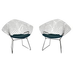 Pair of classic Bertoia small chrome diamond lounge chairs, originally designed by Harry Bertoia in 1952. These are a more recent production by Knoll, made in the USA, circa 2016. Th...