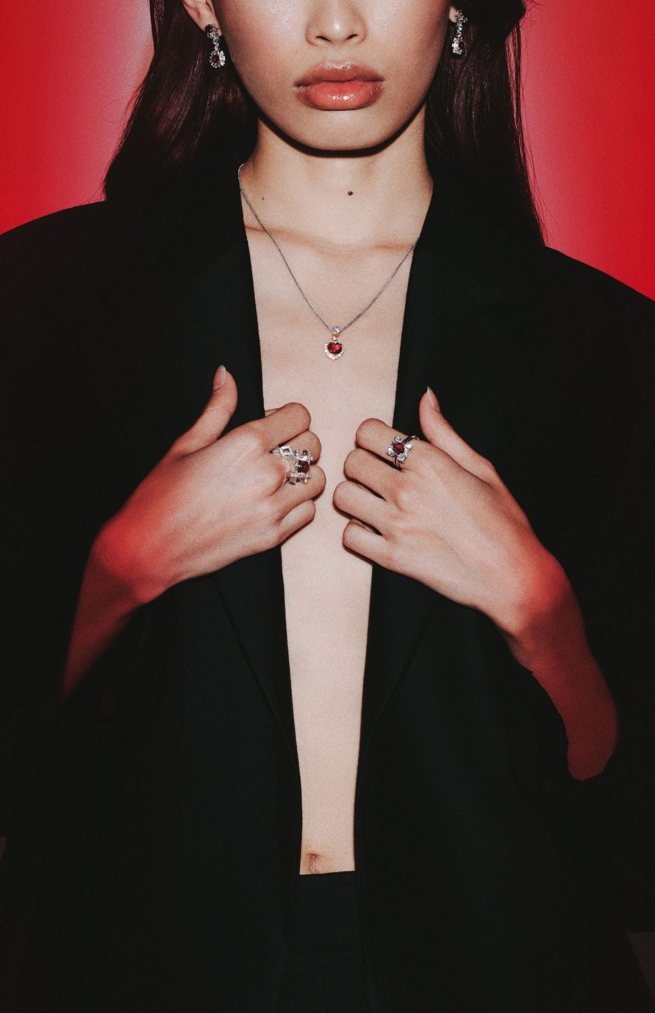 The Solstice Pendant Necklace is a fine jewelry piece that combines timeless geometry with the brilliance of a rare red spinel. Handcrafted in New York City, this pendant showcases a...