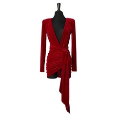 Ruby red velvet draped mini cocktail dress ALEXANDRE VAUTHIER