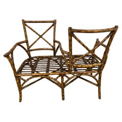 Vintage French burnt bamboo tete a tete or conversation settee. Add your cushion of choice.