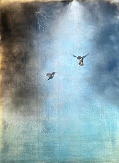 Carolyn Reynolds’ "Gilded Duet" is a stunning exploration of light, texture, and movement. This captivating piece features two elegant hummingbirds in mid-flight, their delicate form...